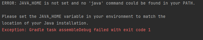 ERROR: JAVA_HOME is not set and no 'java' command could be found in your PATH. Please set the JAVA_HOME variable in your environment to match the location of your Java installation.이는 플러터 개발 도구에서 안드로이드 스튜디오의 경로를 제대로 잡지 못했을 때 발생합니다. flutter doctor 명령어를 실행해 보면 다음과 같이 안드로이드 스튜디오를 찾지 못했다는 메시지가 표시됩니다.